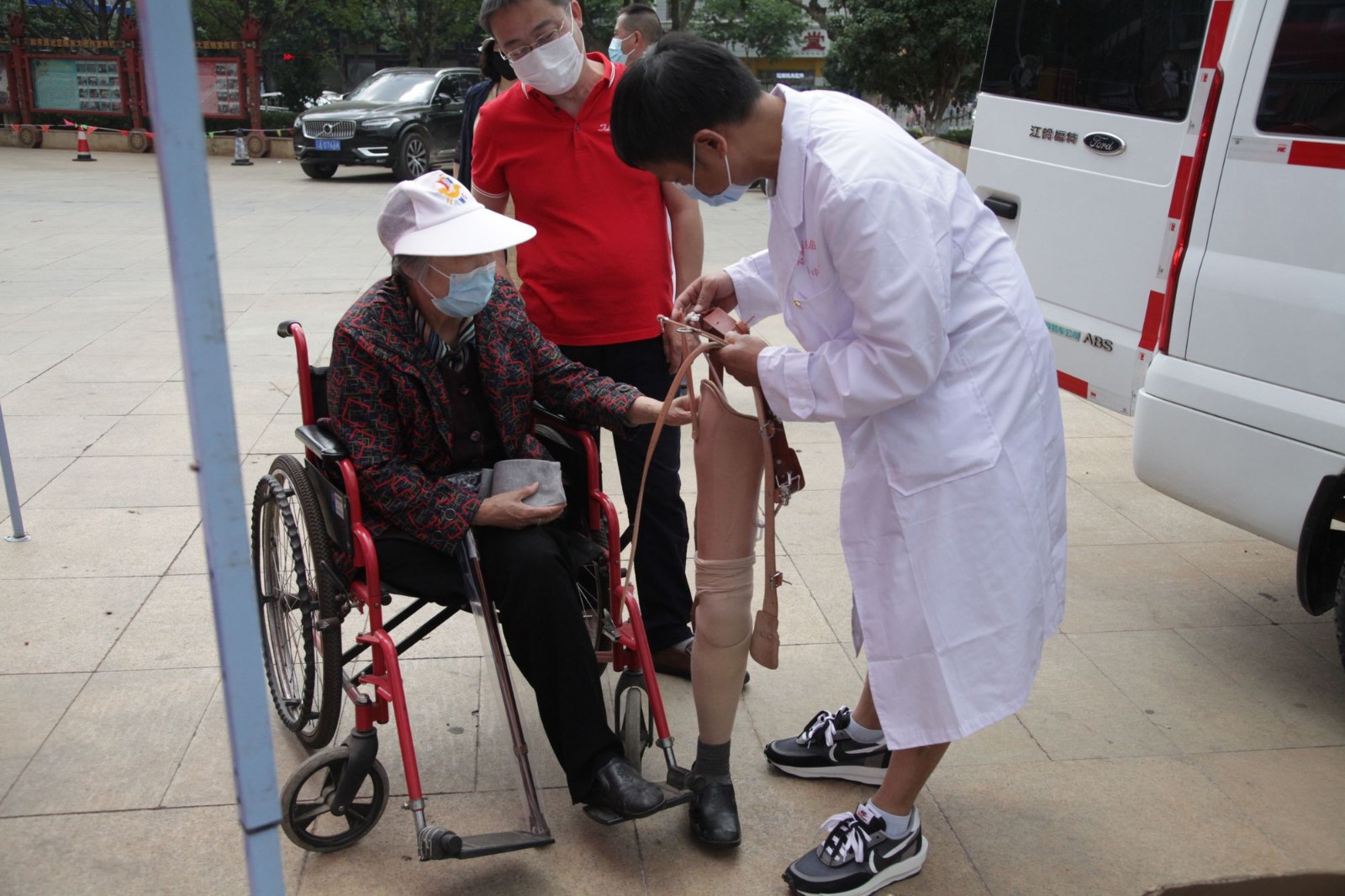 现场为患者维修假肢