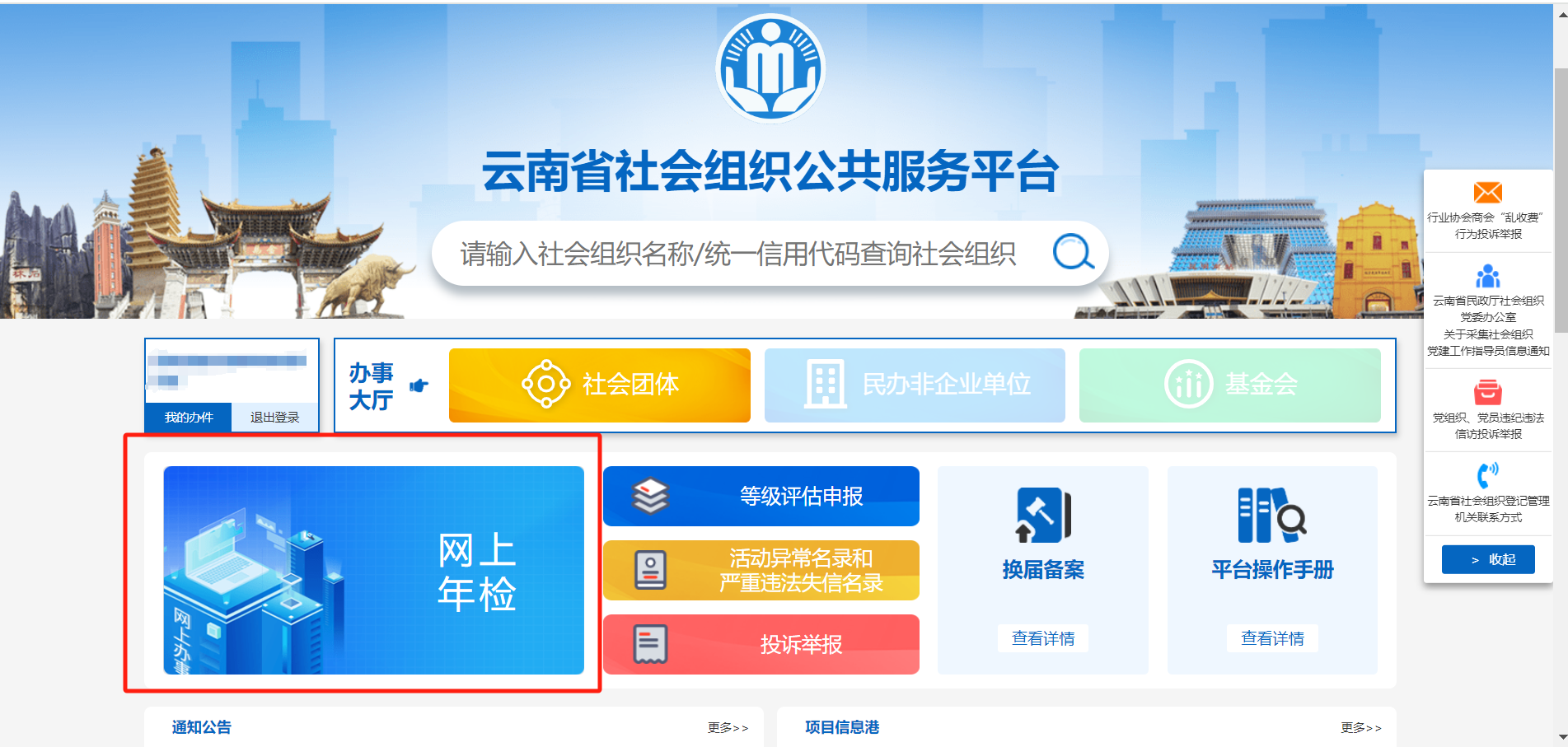2026年3月1日起,各参检全省性社会团体、民办非企业单位请自行访问“云南省社会组织公共服务平台”(//huangsesp.org/shzz/)——点击“请登录”